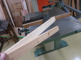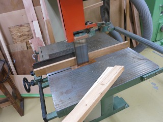挟み込むようにするために帯鋸で切り込んで溝を作る。