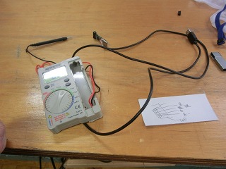 ケーブルを処理した後,テスターでどの色がどの端子に接続されているかを確認する。