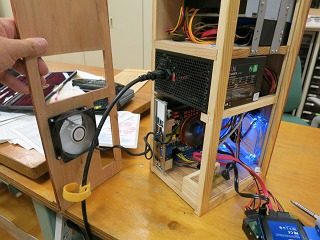 確認後,ネジ止めして完成。一番前の12cmファンで吸い込み真ん中にCPUファン,出口は今回の8cmファンと,上部の電源ファン。