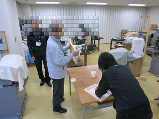 自分の所属する教科教育部では,毎年年末に研修会を行っている。昨年度は陶芸だったが,今年は自分が企画する番になったので,「県産木材ディスプレイパネルの製作」と題して行った。
