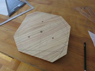 2案は円にするものだが,元々の天板を加工すると足の角が出っ張ってしまう。