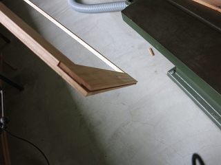 節が多いけれどとってあった薄いスギ板を縦引きして縁にする。
