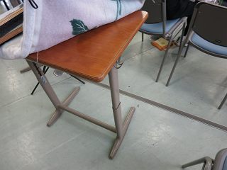 まずは、スティックなどを置くテーブル。演奏中も打楽器は忙しそうに行ったり来たりしているので、わりかし大事なテーブル。