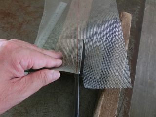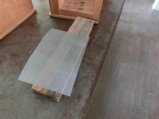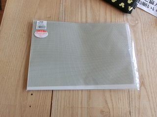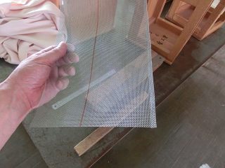 買ってきたのは0.2mm厚の300×200ステンレスメッシュ、560円。まずは折り台と打木で端を折り曲げる。