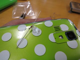 これをwi-fi電波(2.4GHz帯)を使う機器のアンテナ付近に近づけると、電波の発信に合わせてLEDが発光する。
