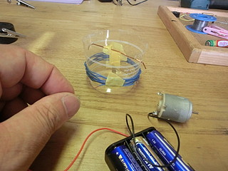 そこで、エナメル線を紙コップに50回巻いてみた。