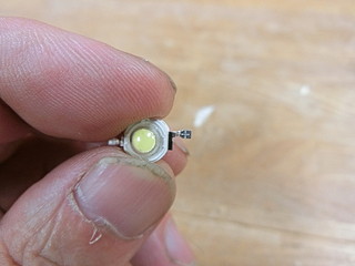 かなり昔に枕元用に作成した木材加工製品サンプルに中国製の照明用超高輝度LEDを一つ使って作ることにした。