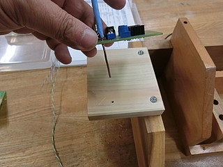 少し首の部分を長く作ったので、基板を取り付ける板に穴を開けて銅線を差し込むことにして接合部にかかる力を逃すことにした。