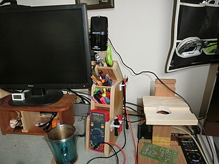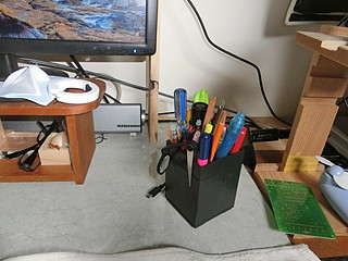 また、使っているときにテスターが固定されないのも使いづらいので、ペン立てと一緒にして作り直すことにした。