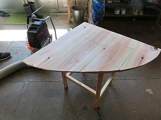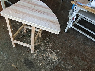 ここで気がつかなかったのだけれど、当初天板の対角線に脚をつけるつもりだったのに内接の四角形で足を組んでしまっていた。