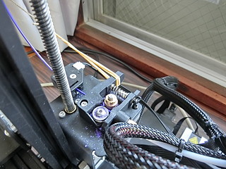 この取り付けもなかなか上手くいかずに何度も失敗したが、現在安定している。本来なら右側にもブロアファンを付けることで吐き出したフィラメントをより早く冷やすことができるが、現在はこれで運用している。