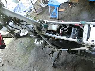 フロントスプロケットが外れて動かなくなっていたが、長く使わなかったのでアクセルが動かなくなっていた。