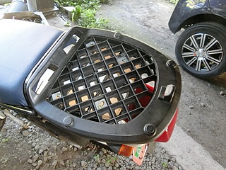 以前のスクーターで使っていたものだが、大きいので普段のバッグがそのまま入るのはありがたい。