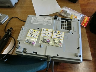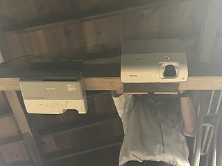 以前は教室で使っていたプロジェクター、現在黒板上に常設の超単焦点プロジェクターがあるので眠っていた。