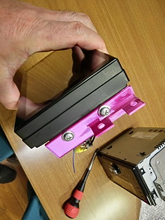 2DINのサイズは同じだが、取り付けステーは使えなかったので、3Dプリンタで自作する。
