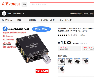 中国製で1000円くらいだけれど、50Wでブルートゥースにも対応している。