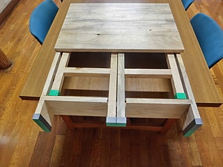 中学校の木工室を借りて、ほぞ穴とほぞを木工機械で加工して校長室に持ち込む。
