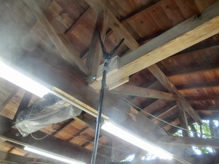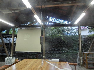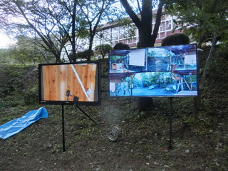 大勢の参観者が訪れる公開授業に際して、森の教室から中継出来るようカメラを設置した。