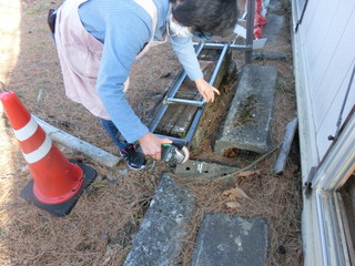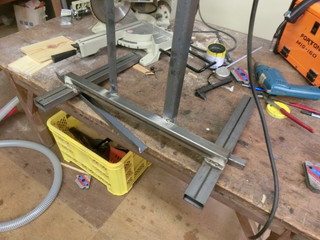 今回テレビをご寄付頂いたので、ストックしてあった鉄骨でスタンドを溶接する。
